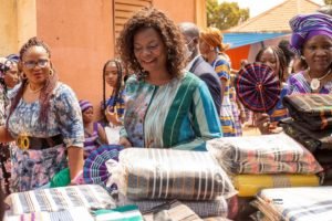 Madame Louise Anne Go, ministre déléguée en charge de l’artisanat, représentante du ministre en charge de l’artisanat Harouna Kaboré, s’est saisie de l’occasion pour prendre la parole au nom de tous les parrains (la ministre de la culture et celle en charge de la femme), pour saluer cette initiative de la FENATI-BF. À l’en croire, le Burkina Faso est l’un des plus grands producteurs de coton en Afrique de l’ouest, mais malheureusement moins de 2% de ce coton est transformé localement. Foi de quoi selon elle, il est important de féliciter l’ensemble de tisseuses pour leur contribution à transformer cette matière première, réduisant par ricochet le fort taux de coton exporté à l’état brute.