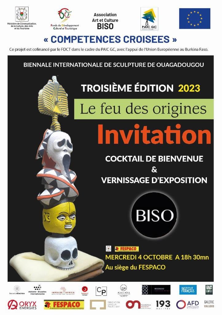 Le comité d’organisation de la BISO (Biennale Internationale de Sculpture de Ouagadougou) 2023 vous invite au vernissage de l’exposition de la troisième édition de l’évènement le mercredi 4 octobre 2023 à 18h30 au siège du FESPACO.